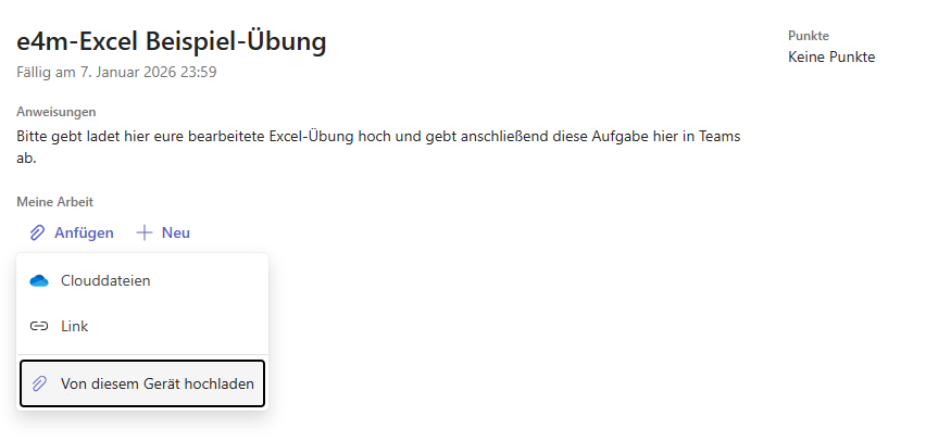 “Anfügen” → “Von diesem Gerät hochladen