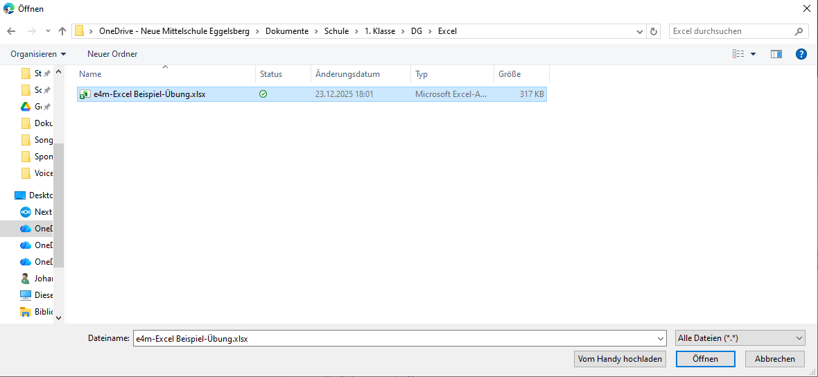 Aufgabe im richtigen Ordner suchen und “öffnen”