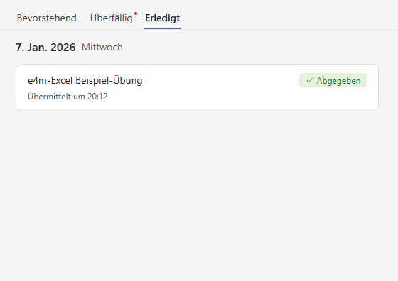 Abgabe in “Erledigt” kontrollieren