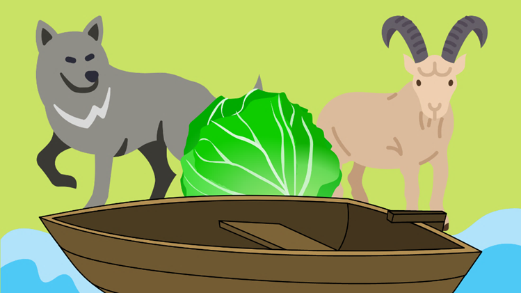 Ein Bauer ist auf dem Weg nach Hause. Bei sich trĂ€gt er einen Kohlkopf, begleitet wird er von einer Ziege und einem Wolf. Wenn er nicht auf alle drei aufpasst, frisst die Ziege den Kohlkopf und der Wolf die Ziege. Doch dann kommt der Bauer an einen Fluss, an dem nur ein winziges Boot zur Ăberquerung am Ufer liegt. Darin ist auĂer ihm nur Platz fĂŒr zusĂ€tzlich ein Tier oder den Kohlkopf â der so gigantisch ist, dass auch er nur allein transportiert werden kann. Wie bringt er nun alle drei sicher ĂŒbers Wasser, ohne Verluste zu erleiden?