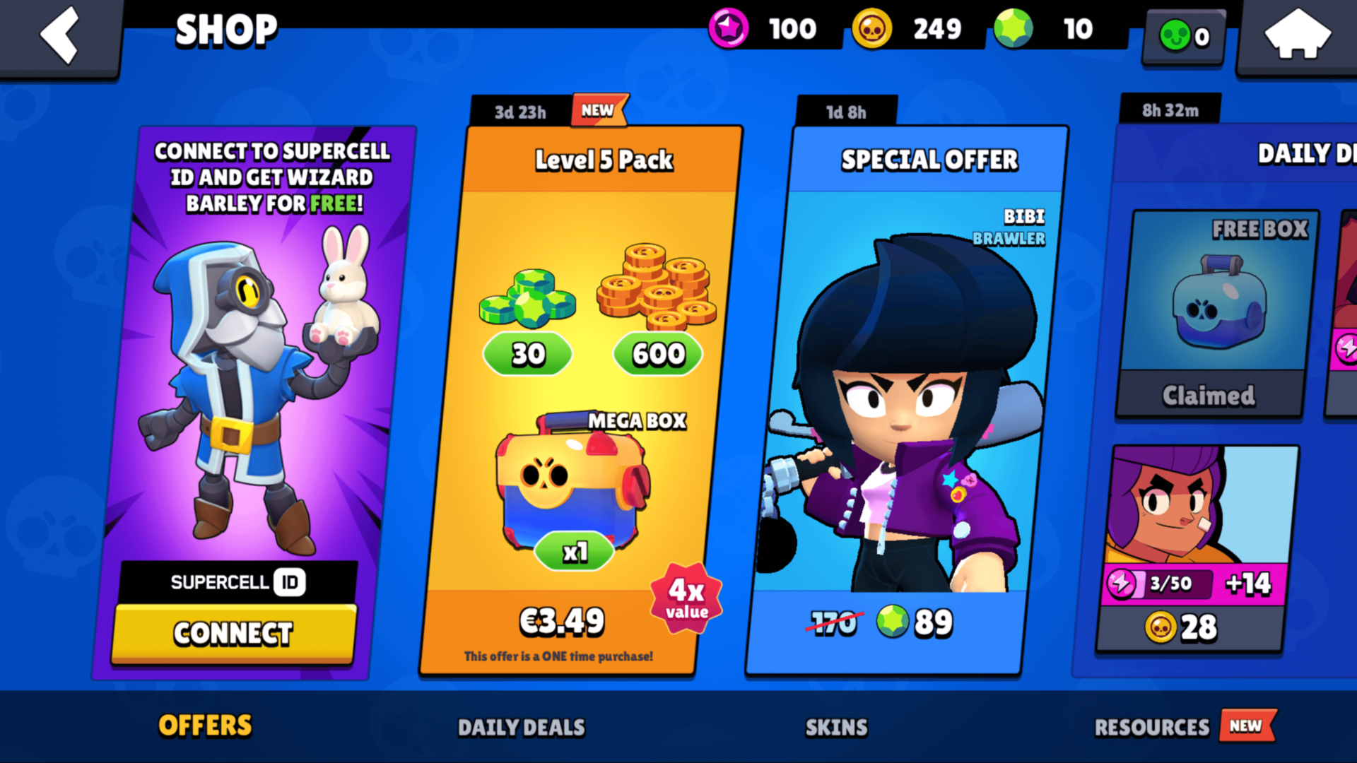 - Im Shop werden 30 Gems für 2€ angeboten.
