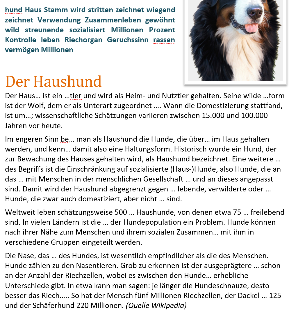 Kopiere die fettgedruckten Wörter oder Wortteile und setze sie an die richtige Stelle! Entferne die ĂŒberflĂŒssigen Punkte!