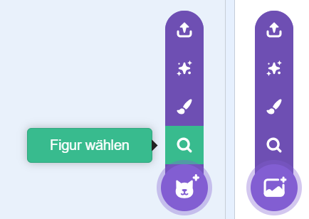 Größe und Position der Figur auf der Bühne kann hier eingestellt werden. Neue Figuren können hier ausgewählt oder selbst gezeichnet werden. Neue Hintergründe können hier ausgewählt oder selbst gezeichnet werden.