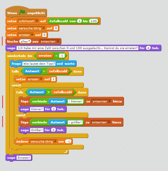 Programm “Zahlenraten” aus coderdojo