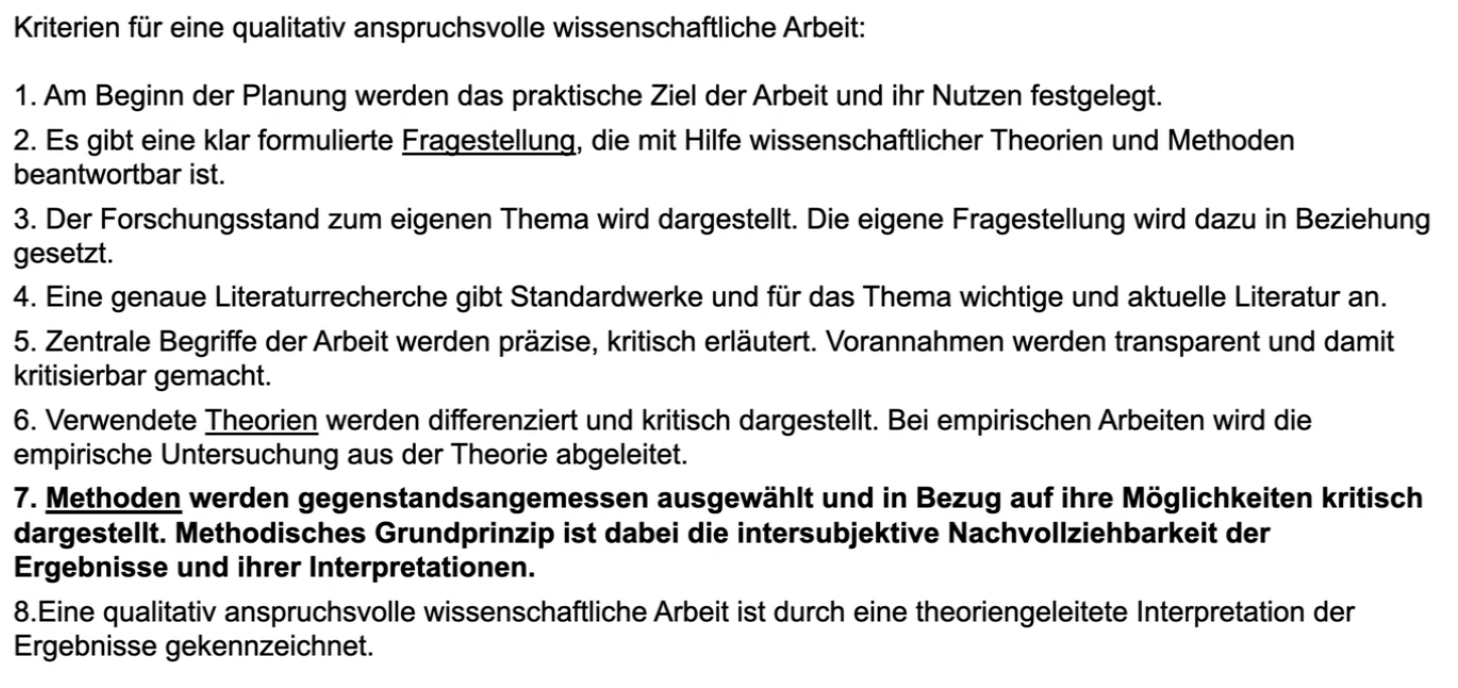 Kriterien für eine qualitativ anspruchsvolle wissenschaftliche Arbeit