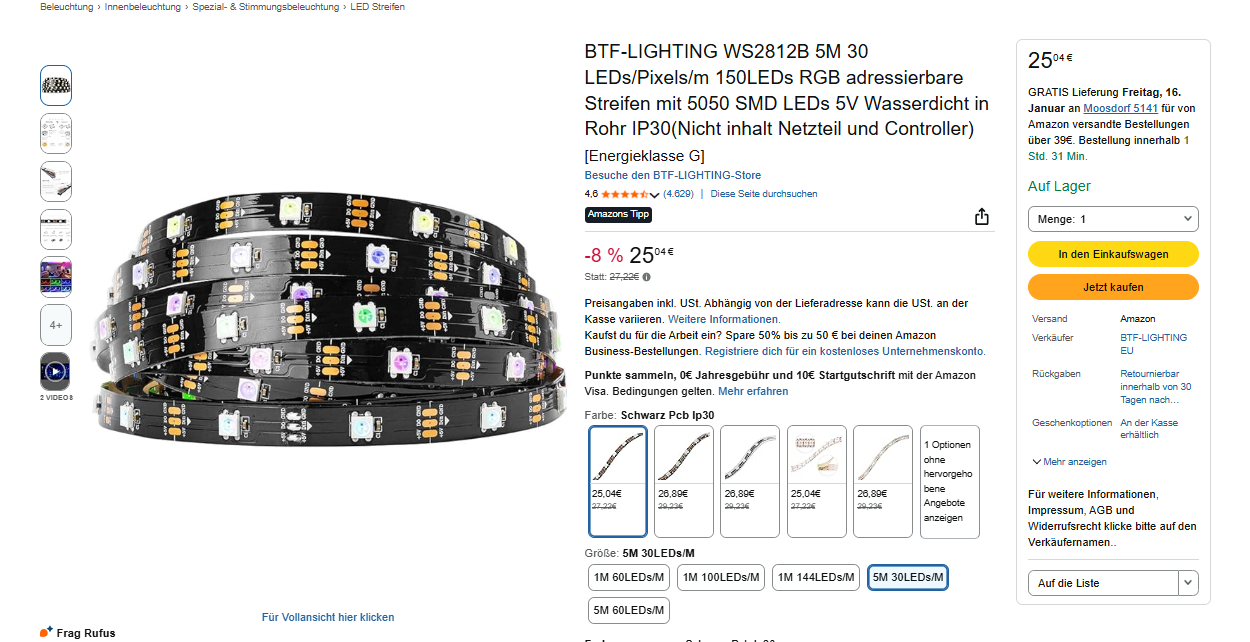 LED Stripe Optionen